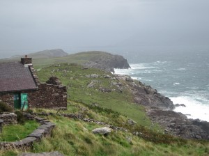 … Verlassen stand das Bauwerk am Rand einer Klippe. Es sah unbewohnt aus. Ringsum wogte kniehohes Gras im Wind. Aus den Fugen zwischen den holprigen Betonplatten vor dem Eingang wuchs Unkraut. Das dornige Gestrüpp einer Heckenrose krallte sich an dem Mauerwerk fest. Über der Tür baumelte ein morsches Holzschild. “Radharc na Mara” – Seeblick – war zu entziffern.